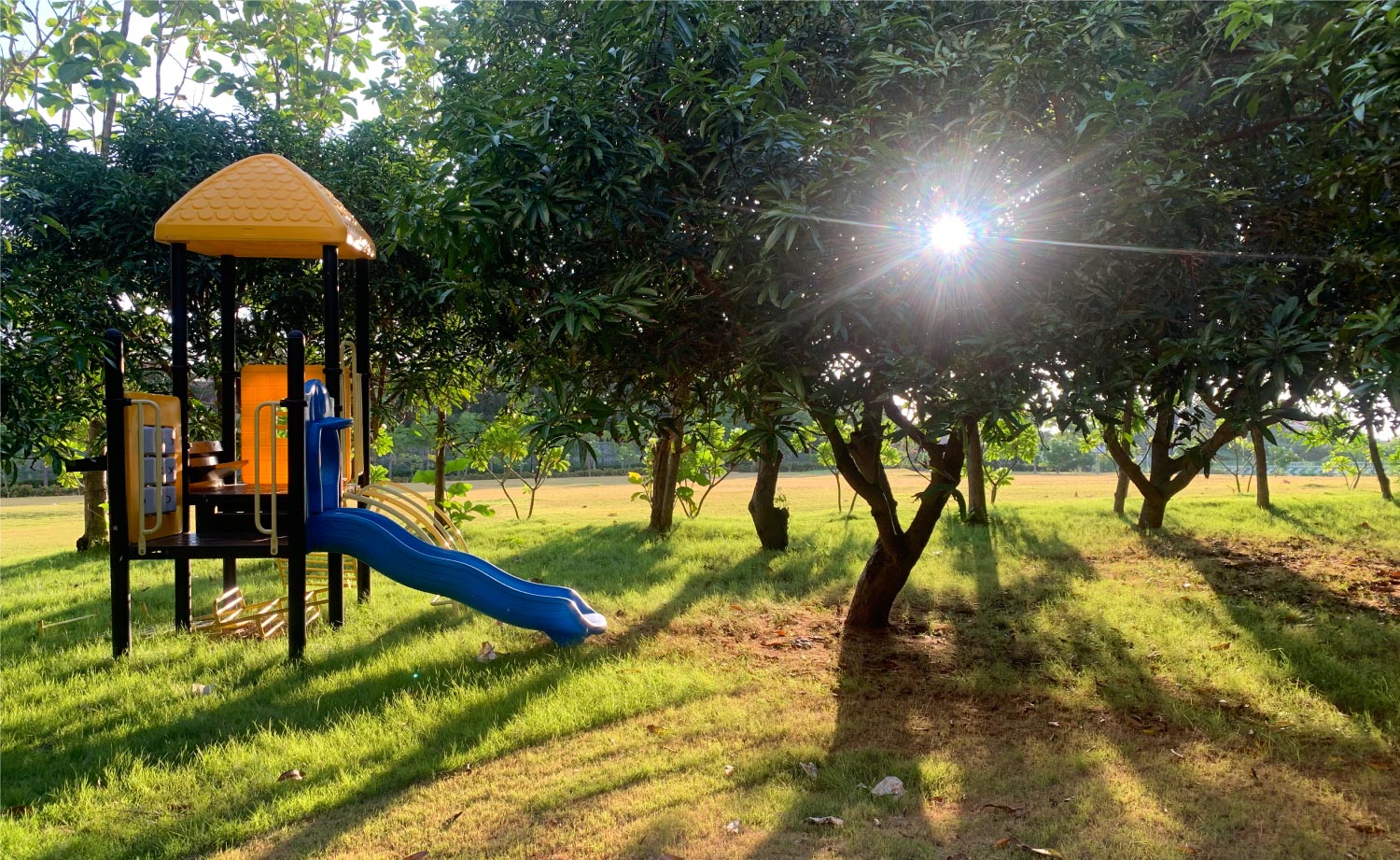 Children playing in the orchard
